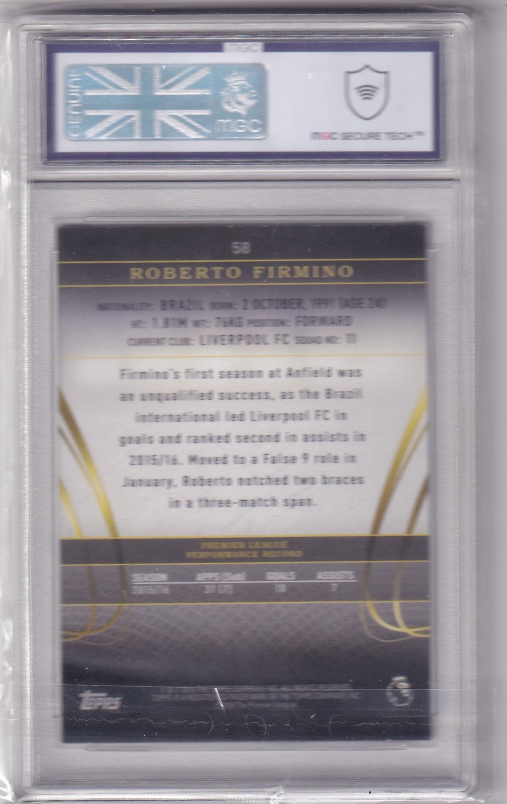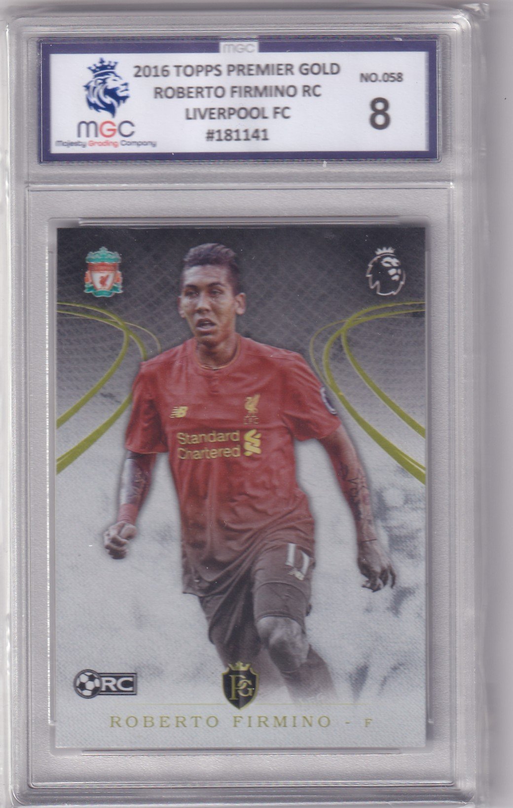 2016 Topps Premier Gold Roberto Firmino Rookie Card #058 – Liverpool FC (Graded 8 by MGC)